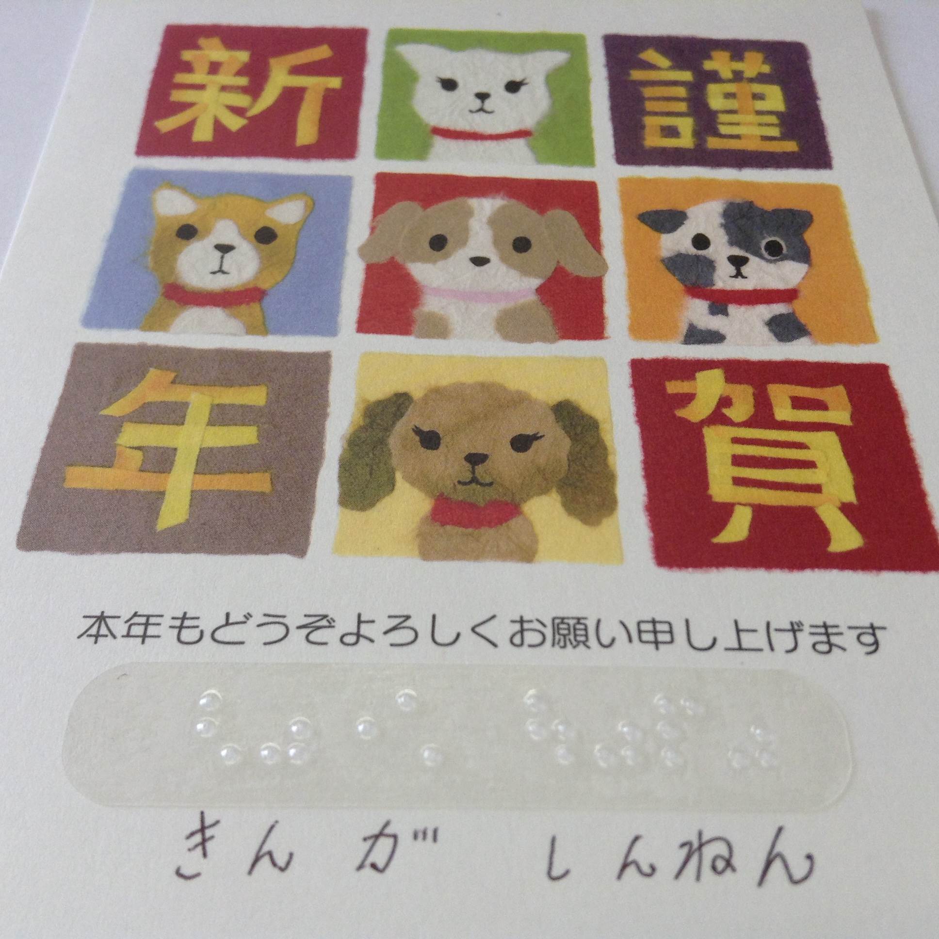 私ども、去年から点字年賀状シールを販売させて頂いております。視覚障がい者のお仕事として点字シールを販売するのは、もしかしたら世界初かもしれません。年賀状・お手紙・はがき。封筒などに、ご活用頂ければ幸いです。点字名刺と共に、視覚障がい者の新たなお仕事として、発展することを願っております。